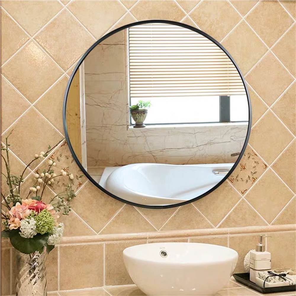This classic metal frame round mirror has a diameter of 24 inches, with a stylish alloy metal frame and a floating round glass panel.
