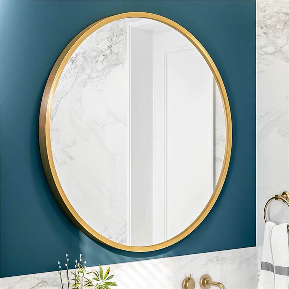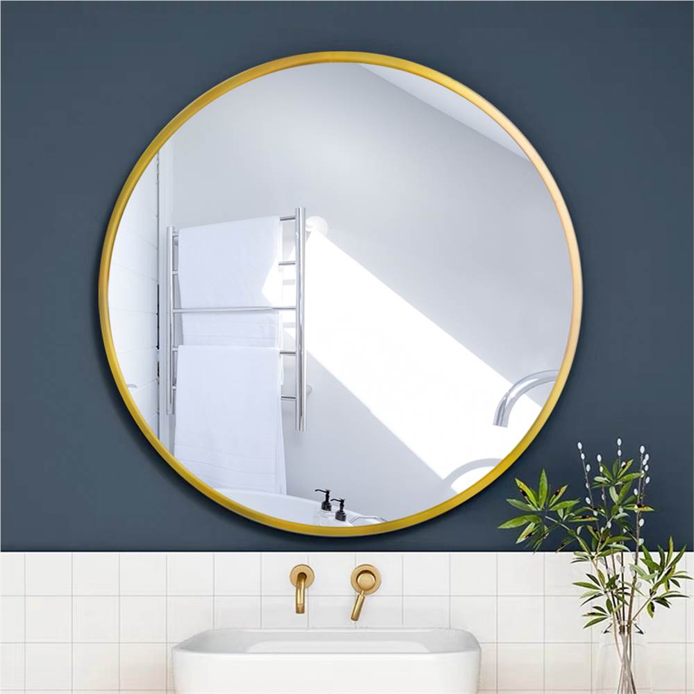 24″ Round Wall-mounted Mirror, For Bathroom, Bedroom, Entrance, Powder Room – Gold