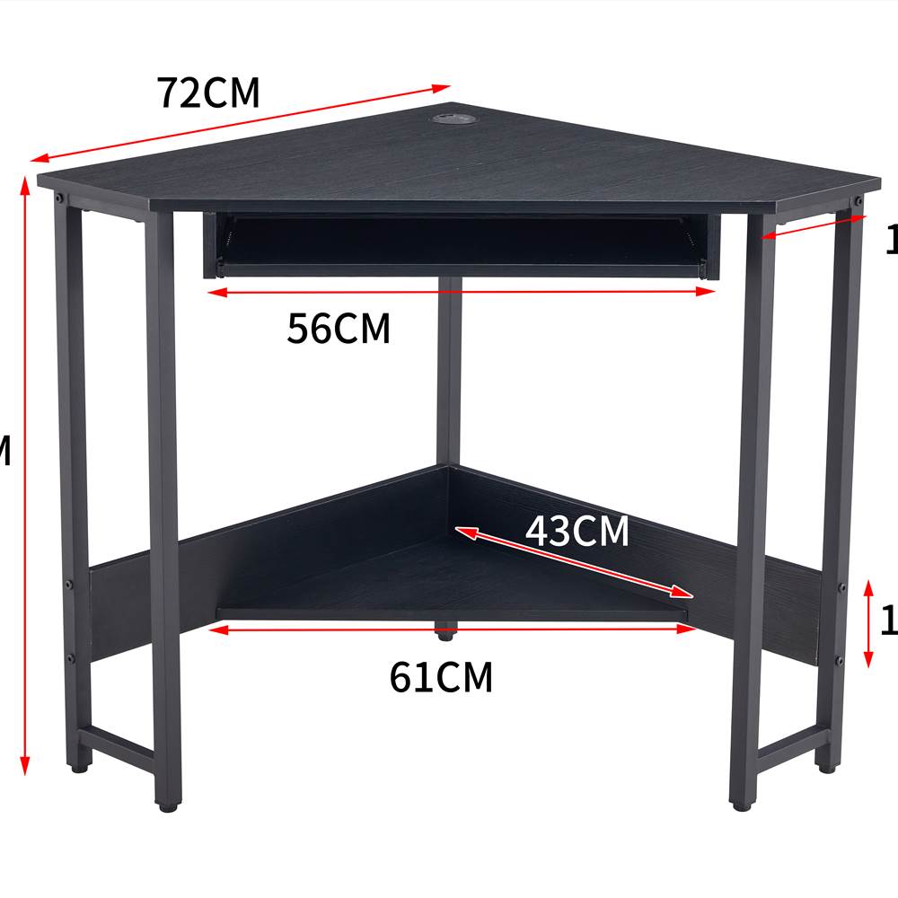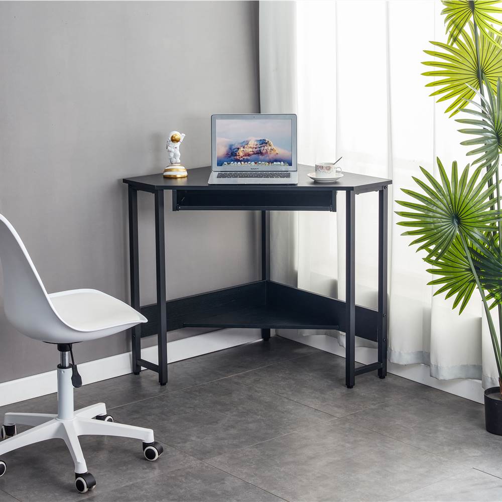 28.3″ Triangle Computer Table With Keyboard Tray And Large Storage Space, For Office, Cafe, Study Room – Black