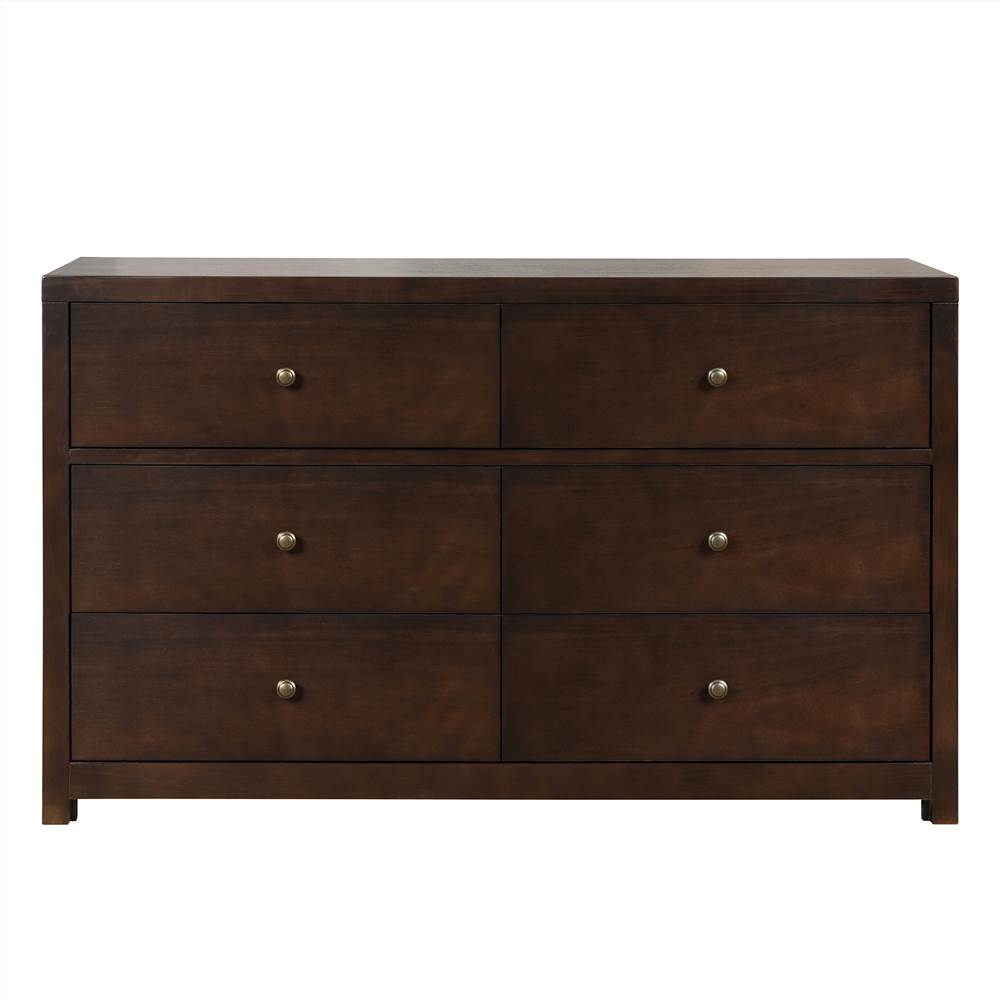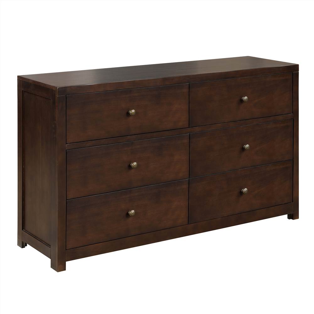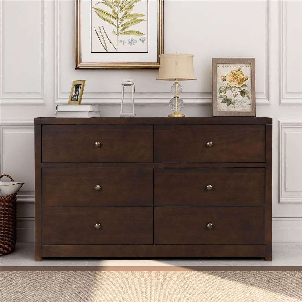 The product is framed in solid pine wood and features 6 large dresser drawers that offer ample storage space for clothes, linens, and more.