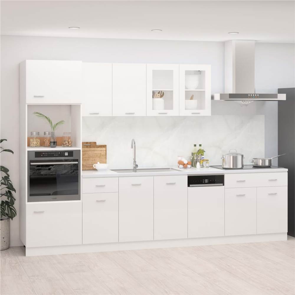 This 7-piece kitchen cabinet set, with its elegant design, optimises your kitchen space and provides ample storage space for your personal belongings! These cabinets are durable and functional, keeping your kitchen more organised. They also offer sufficient space to store bowls, plates, pots, and other kitchen appliances. The dishwasher panel features a simple design and can protect the dishwasher. Additionally, this set is easy to clean with a damp cloth. Please note: The worktop, electric appliances, faucet and sink are not included in the delivery.