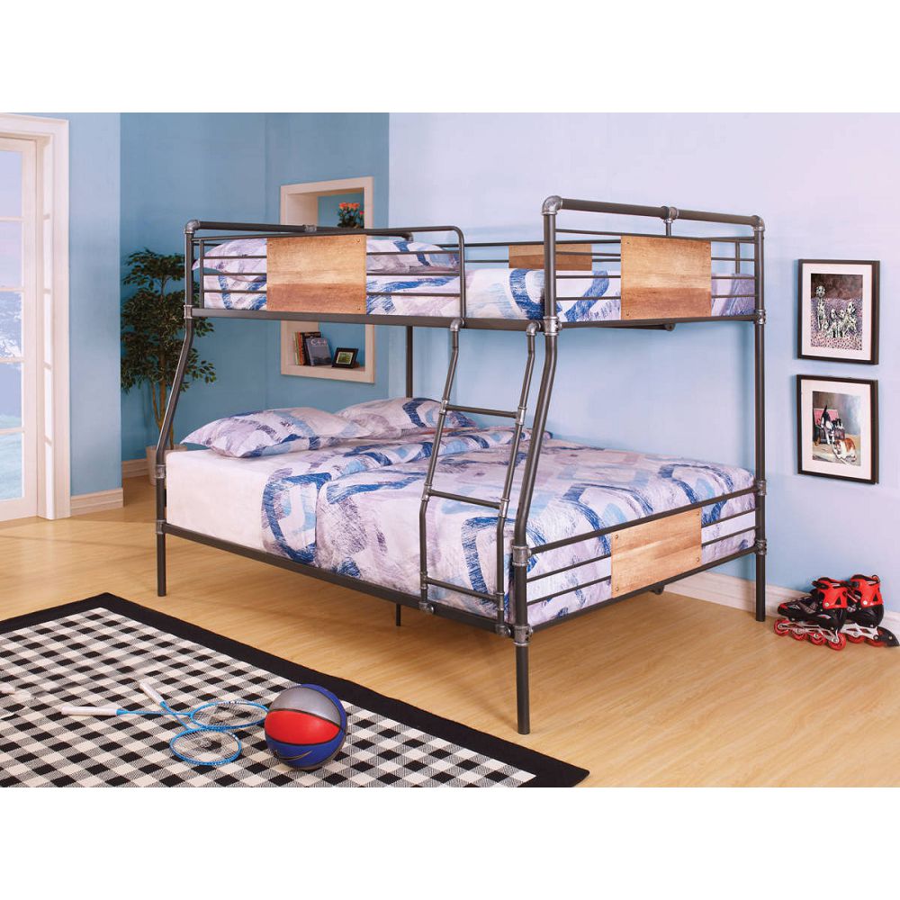 The Brantley collection features a full over queen bunk bed with metal tube frames.
