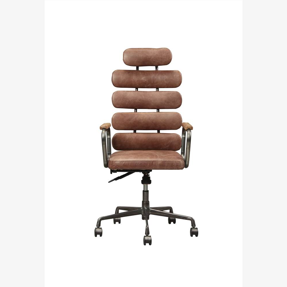 Vintage top grain leather with horizontal panel frame, this executive office chair provides a professional appearance to complement your office or home.