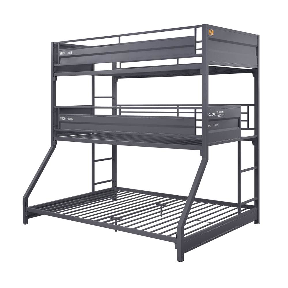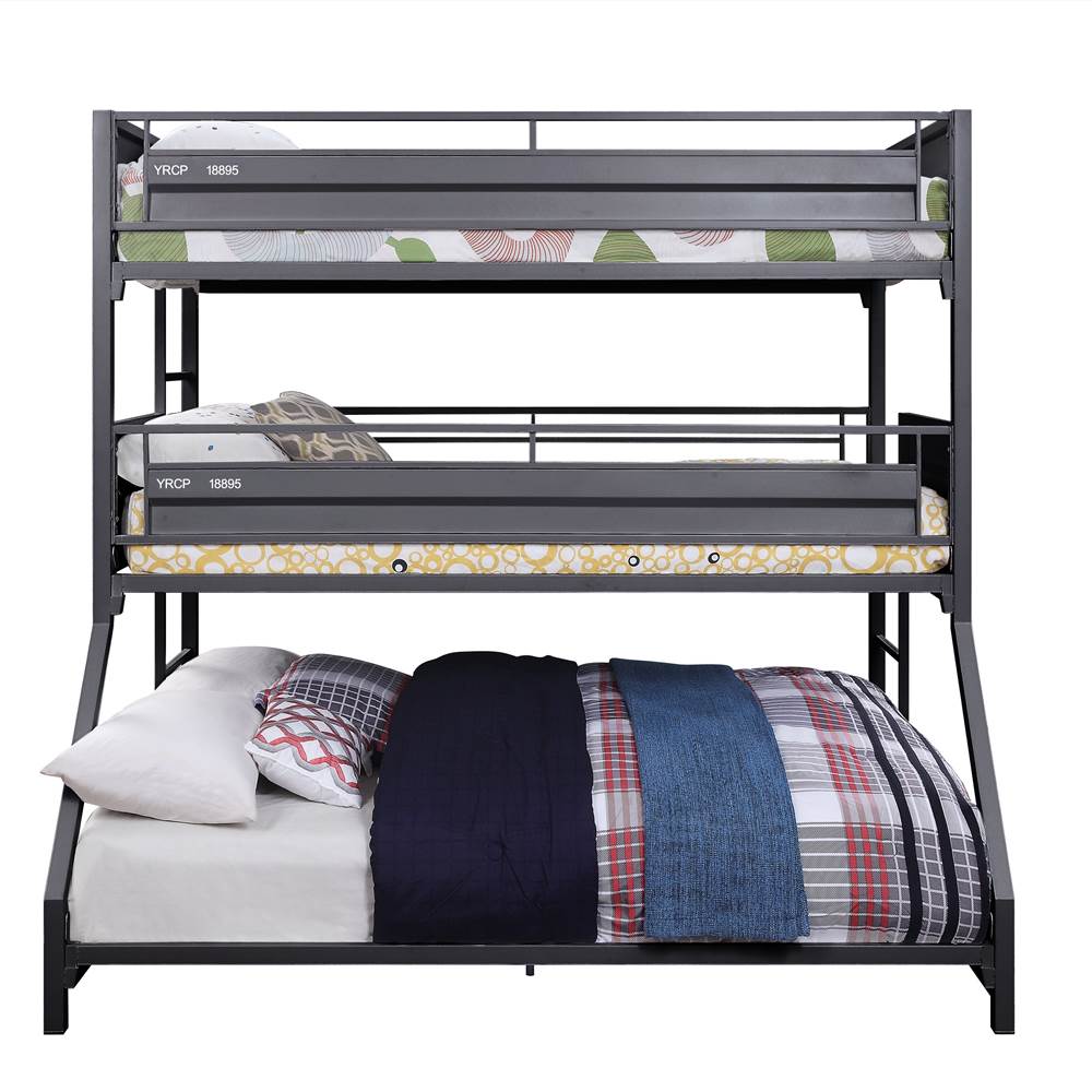 Infuse your small space with a big dose of functional, industrial style. Full of versatile characteristics, this three-tiered bed is the best solution to a small shared bedroom.