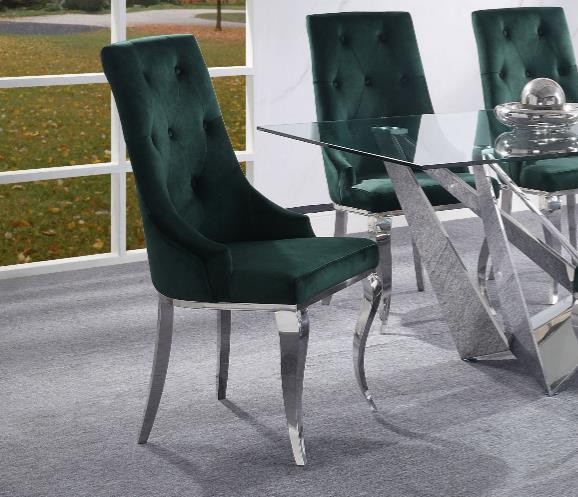ACME Dekel Fabric Upholstered Dining Chair Set Of 2, With Button Tufted Backrest, And Metal Legs, For Restaurant, Cafe, Tavern, Office, Living Room – Green
