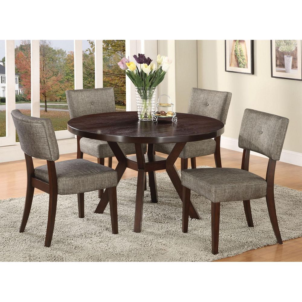 The espresso finish provides rich coloring, and the padding in the upholstered seats makes it comfortable to sit through long dinner parties and other events.
