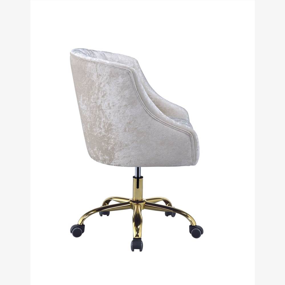 Wrapped vintage cream velvet, this chair is designed to maximize comfort and coziness.