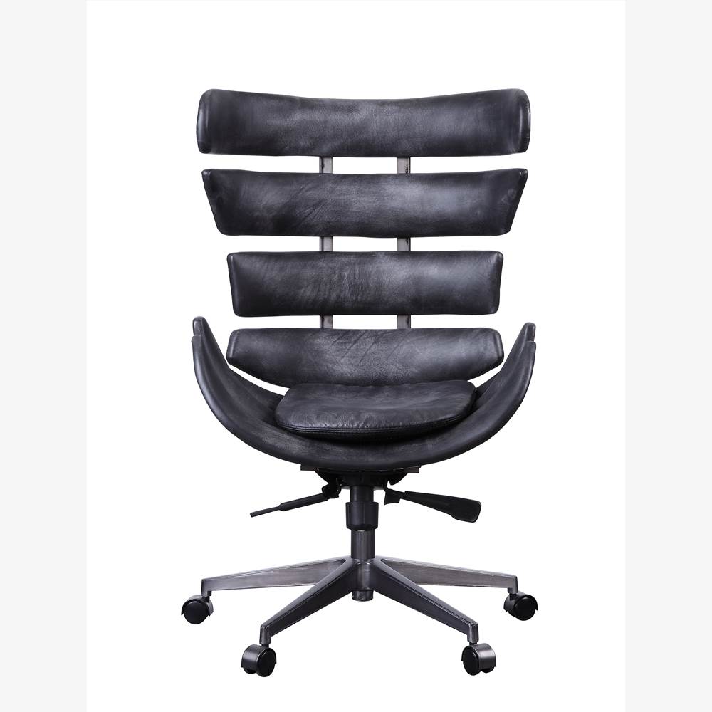 Vintage black top grain leather with horizontal panel frame, this Megan executive office chair provides a professional appearance to complement your office or home.
