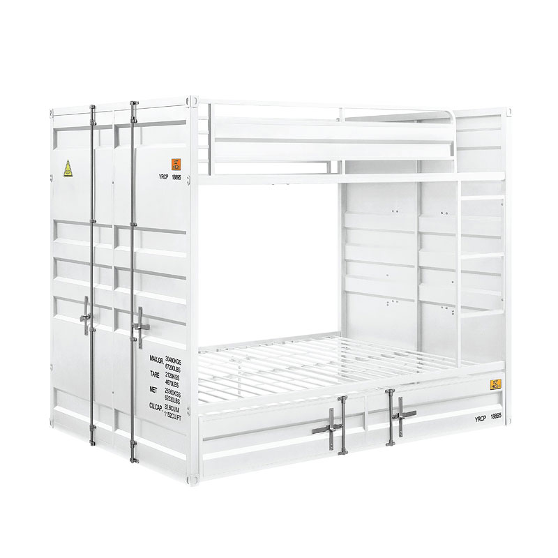 This contemporary container-themed metal bunk bed is crafted with an industrial look that is an ideal addition to your bedroom.