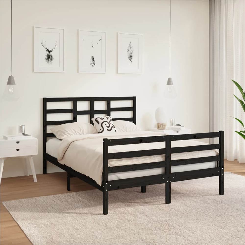 Take the modern route to your bedroom with this wooden bed frame! It makes a practical and decorative addition to your interior. Premium solid wood: Solid pine wood is a beautiful natural material. Pine wood has a straight grain, and the knots give the material its signature, rustic look.Sturdy bed frame: The wooden frame ensures sturdiness and stability. The plywood slats provide good weight distribution, ensuring that the mattress stays in place with every twist and turn of your body during sleep.Eye-catching design: The headboard and footboard design is both decorative and practical. It adds a unique style and comfort. Note:The delivery includes a bed frame only. The mattress is not included. You can check our shop for the matching mattresses.This bed frame is suitable for a mattress measuring 135 x 190 cm (4FT6 Double).