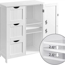 Bathroom Floor Storage Cabinet With 3 Drawers And 1 Adjustable Shelf – White