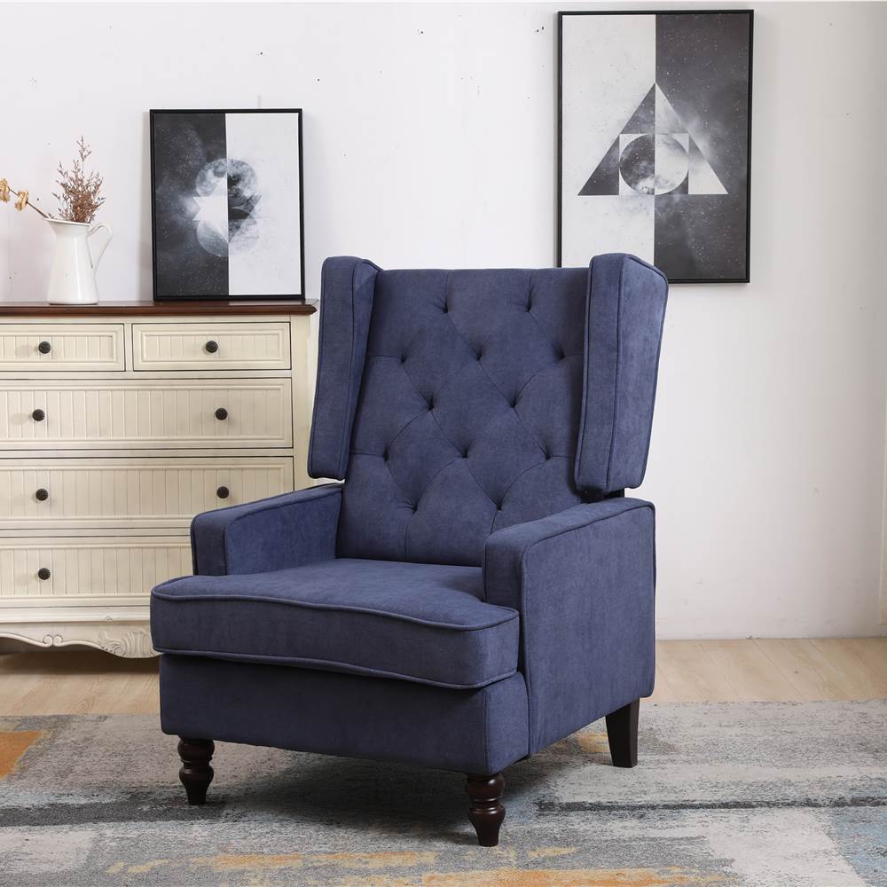 COOLMORE Linen Upholstered Rocking Chair With Rubber Wood Feet And High Backrest For Nursery, Living Room, Apartment – Navy Blue