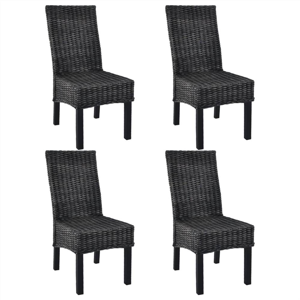 This Kubu rattan dining chair set with simple design and perfectly coordinated colour makes your dining room shining in new splendour. The mango wood frames and the genuine weave make the chairs not only structurally solid but also aesthetically pleasing. The rattan covered seats are very comfortable and easy to clean. If you are looking for something to complement your kitchen or dining room decor, this attractive handwoven rattan chair set will be your top choice. Delivery includes 4 dining chairs.