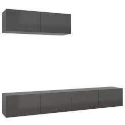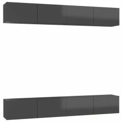 TV Cabinets 2 Pcs With LED Lights High Gloss Grey 75x35x40 Cm