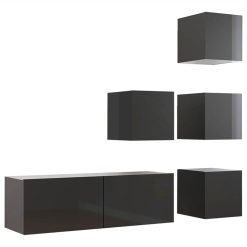3079562 5 Piece TV Cabinet Set High Gloss Grey Chipboard (804507+801489)