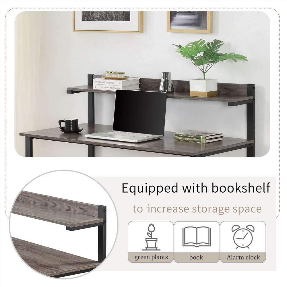 Featuring a vintage wood grain with a black frame, this home office desk effortlessly blends with any furnishings from refined industrial to rustic retro style.