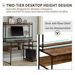 Home Office Computer Desk With Bookshelf & Detachable Display Riser & CPU Bracket – Brown