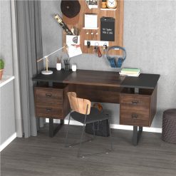 Home Office D&N Solid Wood Computer Desk With 2 Storage Drawers And CPU Tray – Black