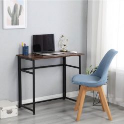 Home Office Folding Computer Desk With Particle Board Tabletop And Metal Frame – Brown