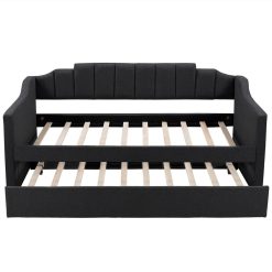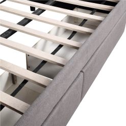 Twin Size Linen Upholstered Tufted Daybed Wooden Frame With Two Storage Drawers And Armrests – Gray
