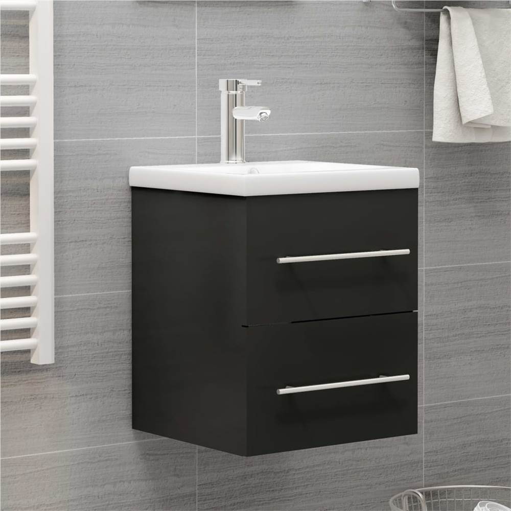 This sink cabinet with a built-in basin is a perfect match for your bathroom or washroom with a striking, tidy appearance. The cabinet is made of chipboard, making it sturdy and stable. The storage cabinet has 1 drawer, offering ample space to store items. It fits perfectly under the sink and makes bathroom storage quite convenient. Made of ceramic, the basin can not only serve as a vessel for daily use but also as an adornment in your living space. Thanks to its trendsetting and contemporary design, this wash basin will definitely suit any decor. An overflow is also equipped to flow water out when it gets too full. Its glazed surface brings itself a modern yet elegant design. Additionally, the cabinet and basin are easy to clean with a damp cloth. Please note: The tap and the drain are not included in the delivery.