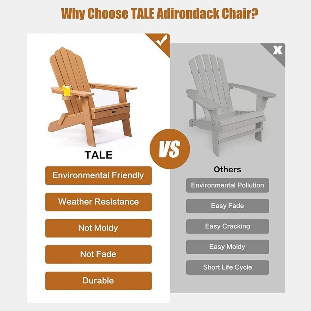 Made of plastic wood, Adirondack chairs are weatherproof and do not easy to fade. It can withstand a variety of climates including hot sun, snow, and strong wind and rain, and will not dent, crack, peel or rot like a wooden chair. It can be used outdoors for a long time.
