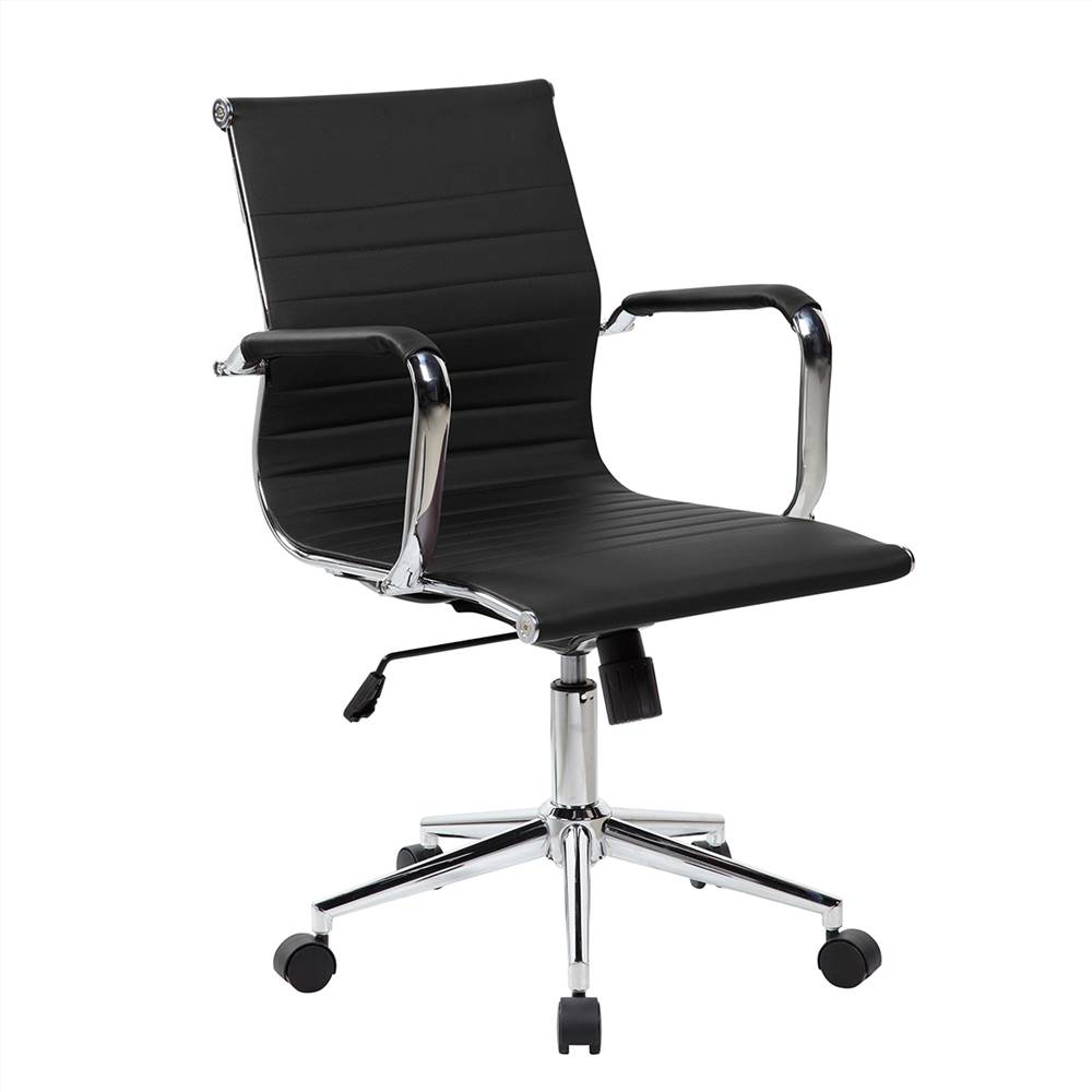 An iconic ribbed design and features a chrome base, pneumatic seat height adjustment, armrests, and locking tilt control with a tension knob and comfortably fits users up to 200lbs.