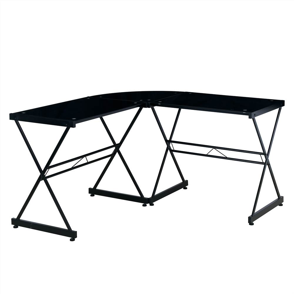 The design of this black L-shaped glass desk is sure to complement a variety of decors.