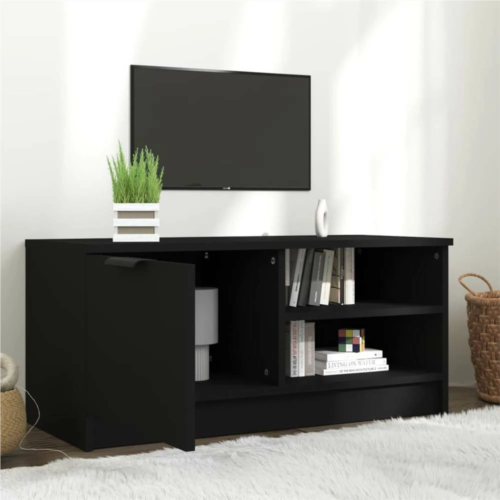 The trendy TV cabinet is a functional and ideal addition to create an attractive and modern interior. Premium material: The engineered wood is of exceptional quality with smooth surface and features strength, stability and resistance to moisture.Ample storage space: The stereo cabinet features a compartment and two shelves for keeping DVD players, game consoles, streaming devices and media carriers neatly organised.Sturdy top: The TV stand has a sturdy top, making it ideal for displaying decorative objects, photo frames, potted plants, etc.