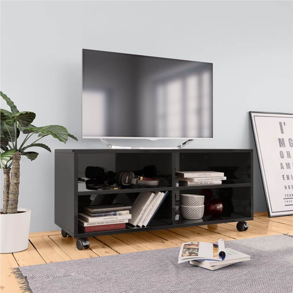 Featuring a trendy yet practical design, this sturdy TV cabinet will definitely become a focal point of your room! The TV cabinet is made of board, which ensures it sturdiness, durability and long service life. Designed with 4 open compartments, this cabinet offers ample storage space for keeping magazines, books, DVD players, receivers, disks and multi-media devices well organised and within reach. Additionally, it can move around easily with 4 smooth rolling castors and keep firmly in place with 2 lockable castors. The TV cabinet is easy to clean with damp cloth and easy to assemble with included mounting kits.