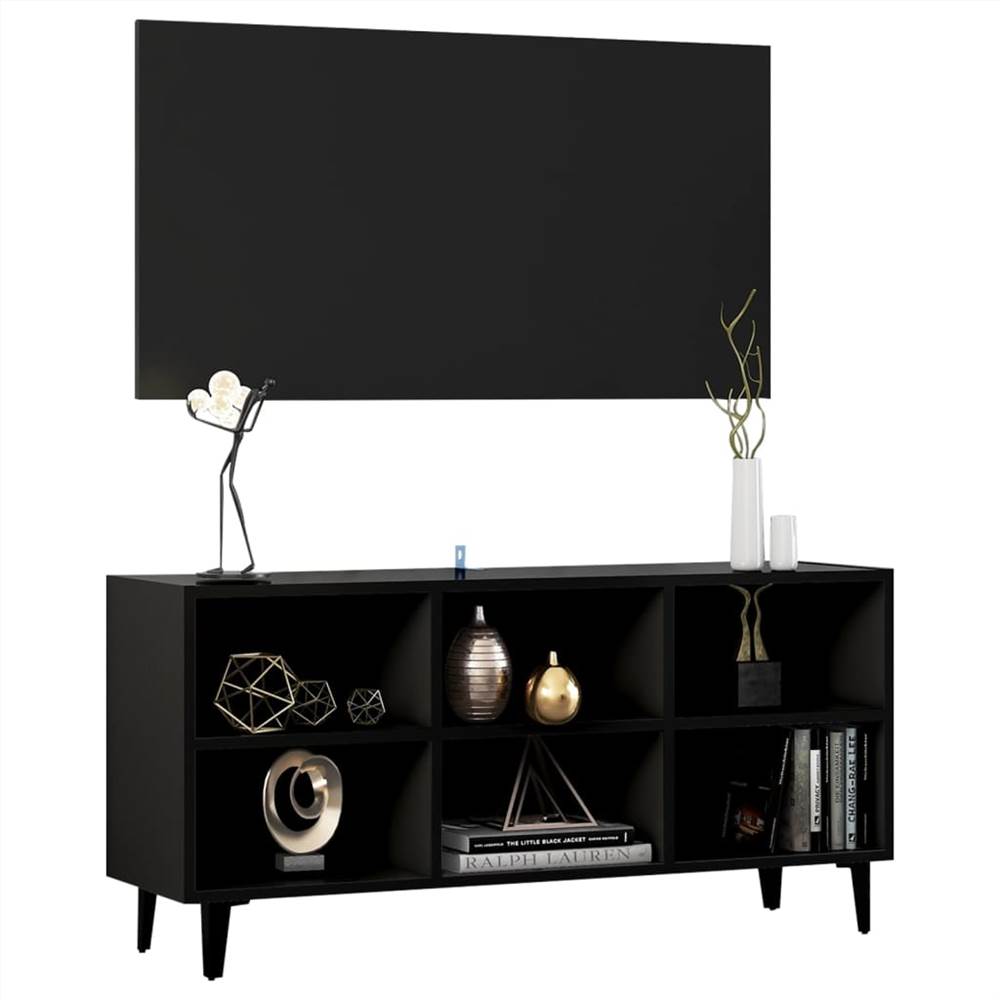 Upgrade your interior to the next level with this well-designed and chic TV cabinet, featuring an industrial charm. This TV stand with four metal legs is stable and sturdy. The sideboard is designed with 6 compartments and offers ample storage space for keeping your magazines, books, DVDs and multimedia devices well organised and within reach. Additionally, it is easy to clean with a damp cloth.