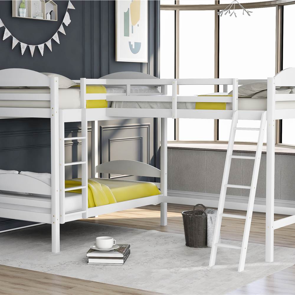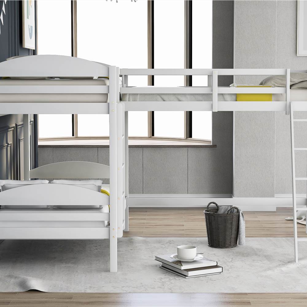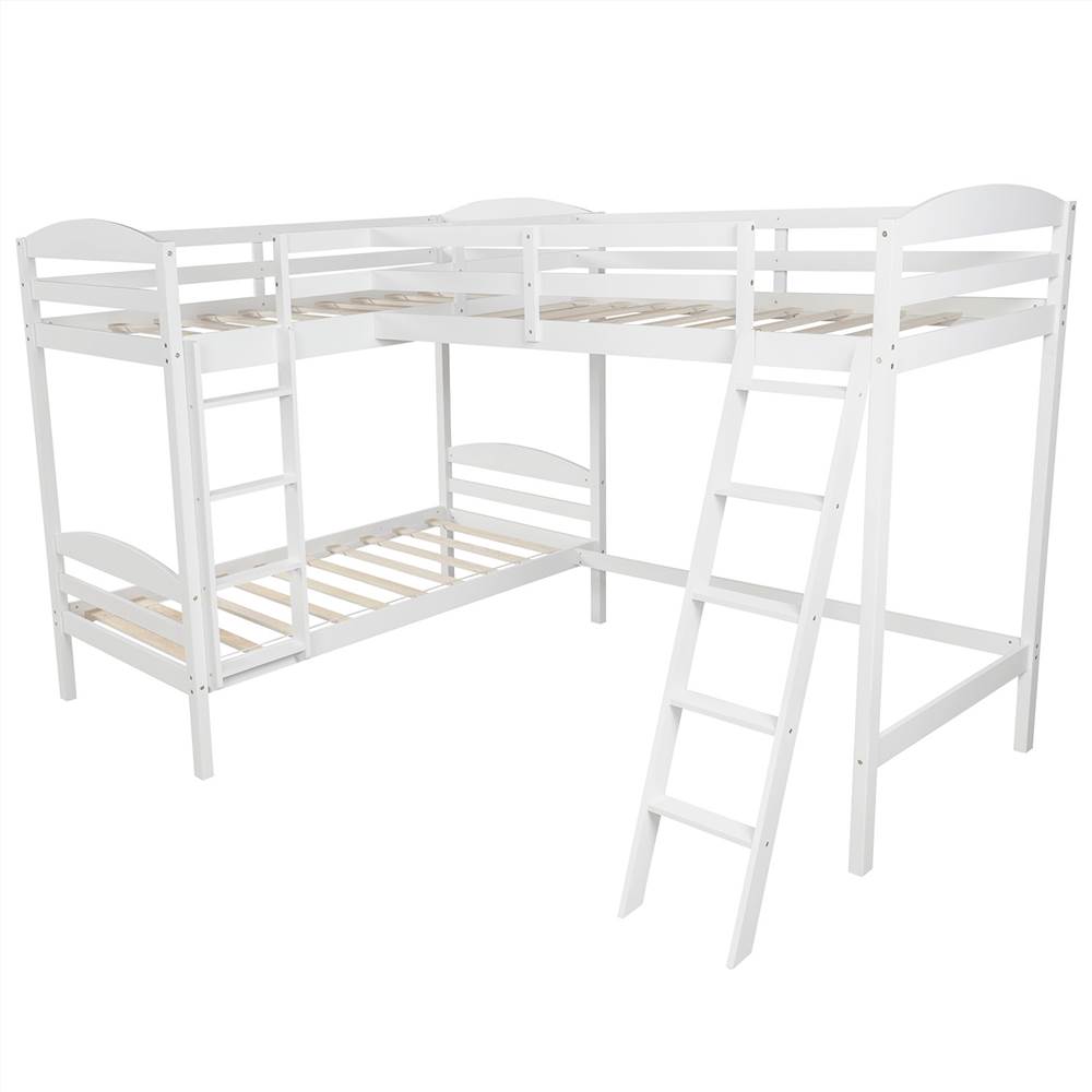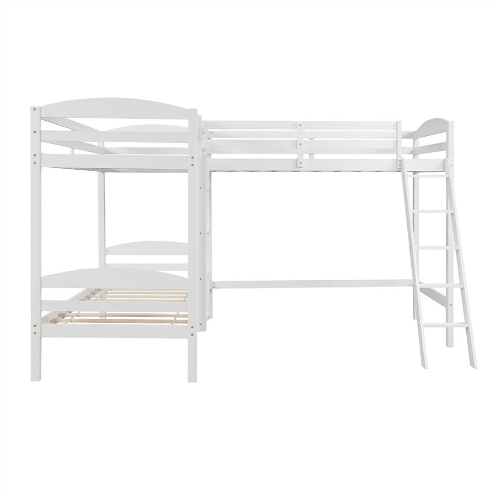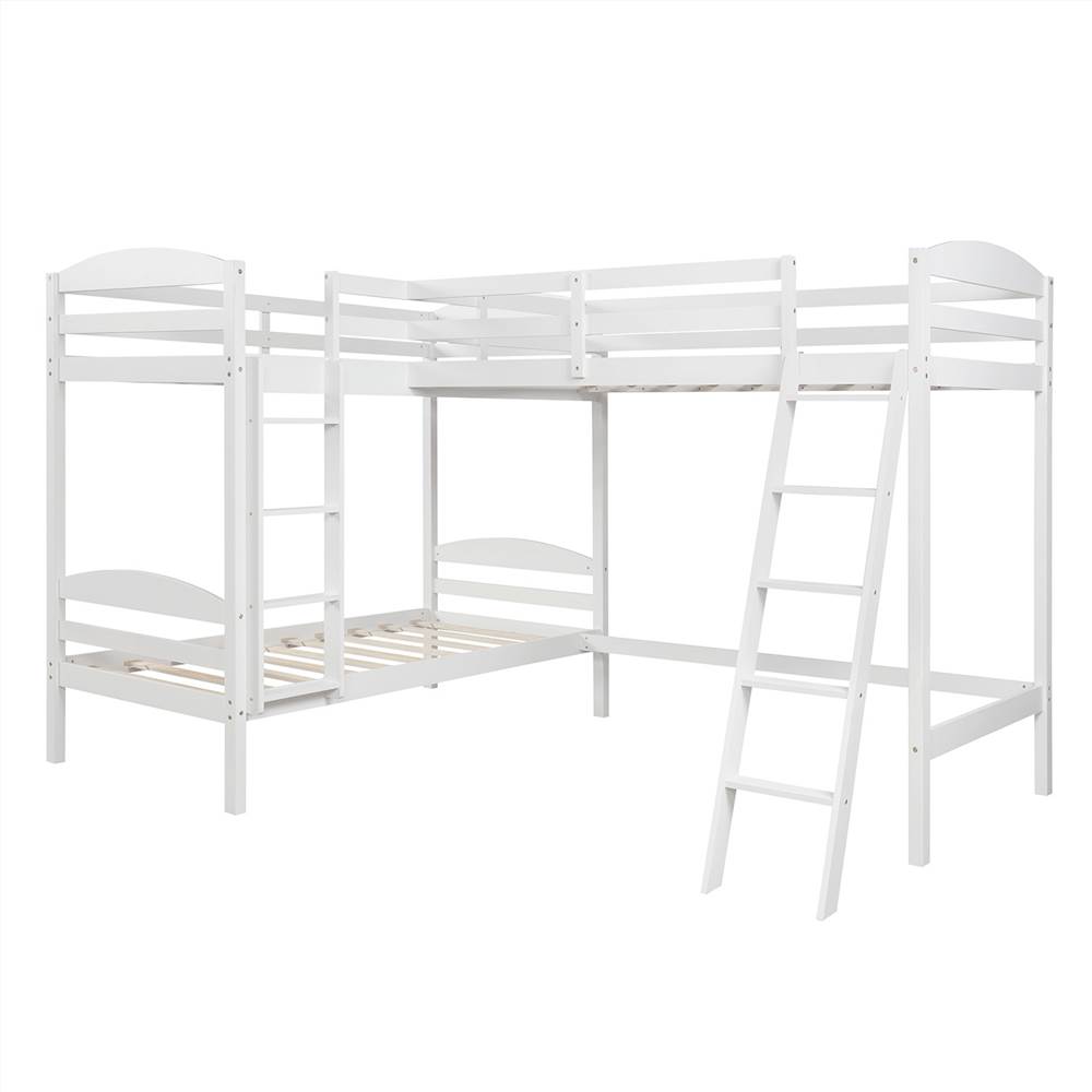 Functional and aesthetic, this L-Shaped Bunk Bed and Loft Bed will enhance any bedroom. A wonderful bed for 3. Fun for your family, sleepovers, or your extra sleeping guests at your lake house getaway.
