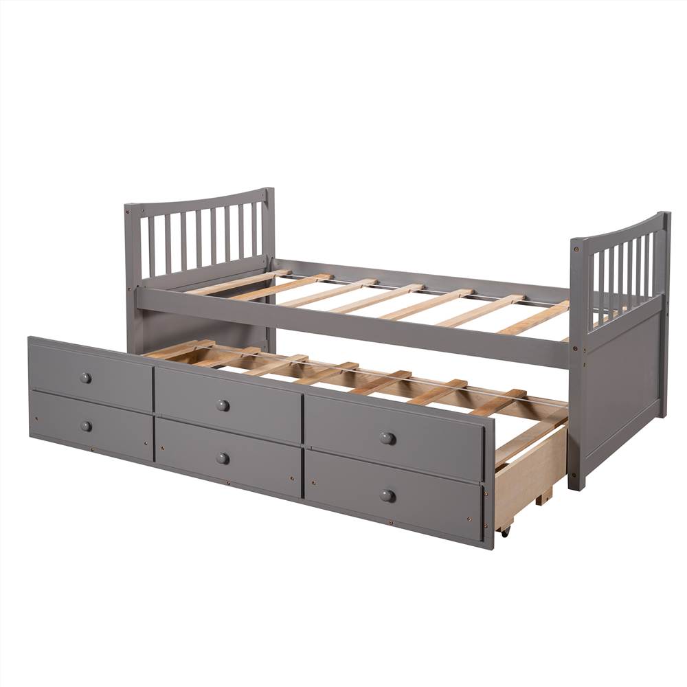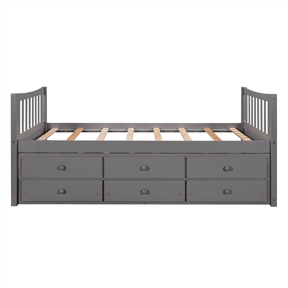 The daybed with a handy pull-out trundle and three functioning drawers takes up minimal space for the spontaneous sleepover guest. The trundle and drawers can easily be pulled in and out for maximum storage space, perfect for organizing anything from clothes and bed linens to toys and games.