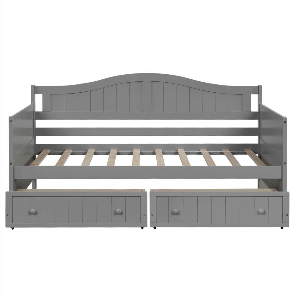 Twin-Size Wooden Platform Daybed Frame With 2 Storage Drawers And Wooden Slats Support – Gray
