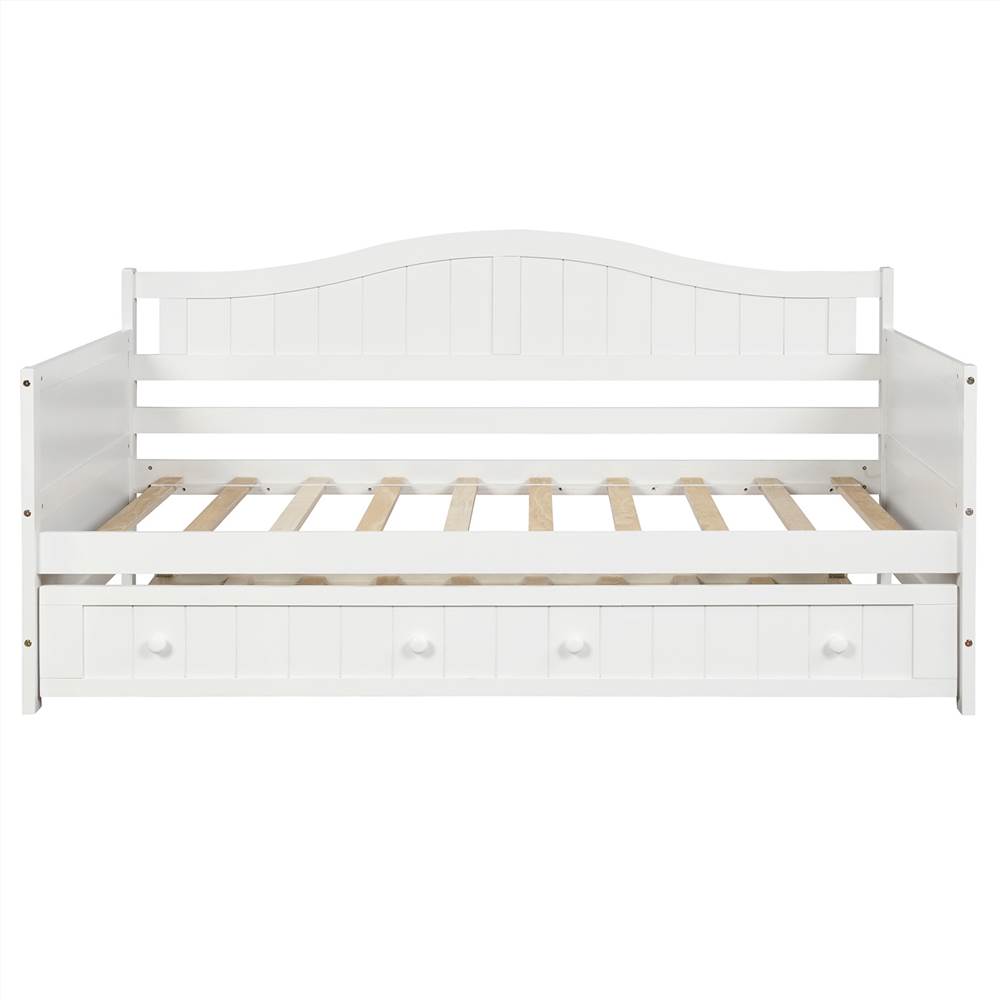 This twin daybed comes with a trundle, easy to pull in and out,multi-functional piece of furniture ideal for small living spaces. The daybed and trundle will each support a twin-size mattress.