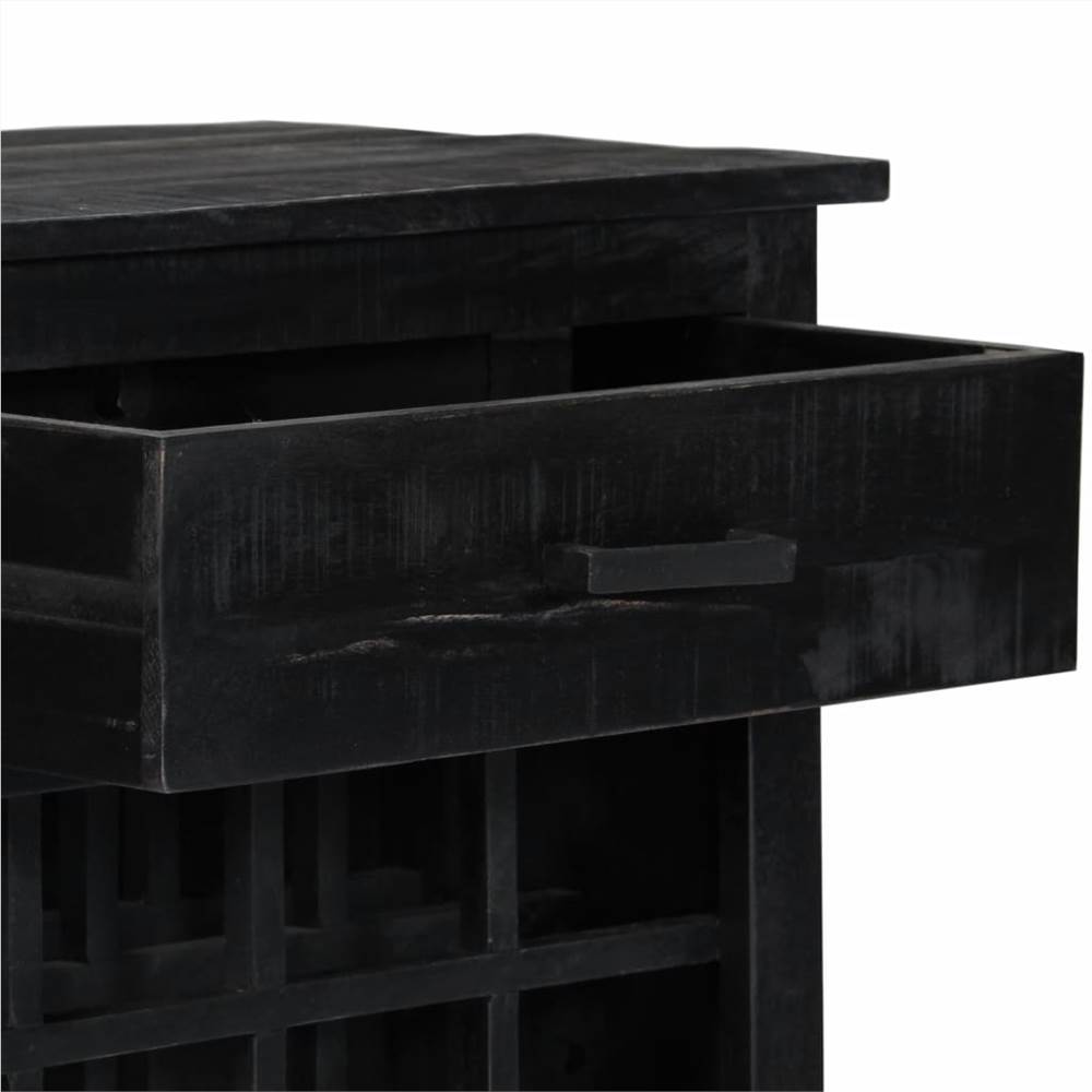 This unique wooden wine rack with a rustic look will make a timeless addition to your home. It can be used to store and display your wine collection and will become an eye-catcher in your home. This rack is made of solid mango wood, a dense and robust hardwood which has beautiful streaks and contours on its surface. Every step of the process is carried out with the greatest care, be it polishing, painting or lacquering. The craftsmanship and the beautiful wood grains make every piece of furniture unique and slightly different from the next. The rack can hold up to 16 bottles of wine. The bottles can be horizontally stored so that the cork remains moist and swelled, which prevents the wine from unwanted contact with the air and helps the wine keep its flavour. Designed with 1 drawer, the rack keeps your small items well organised and within reach. Important note: Colours and grains may vary from piece to piece, making each of our wine racks unique; the delivery is random.